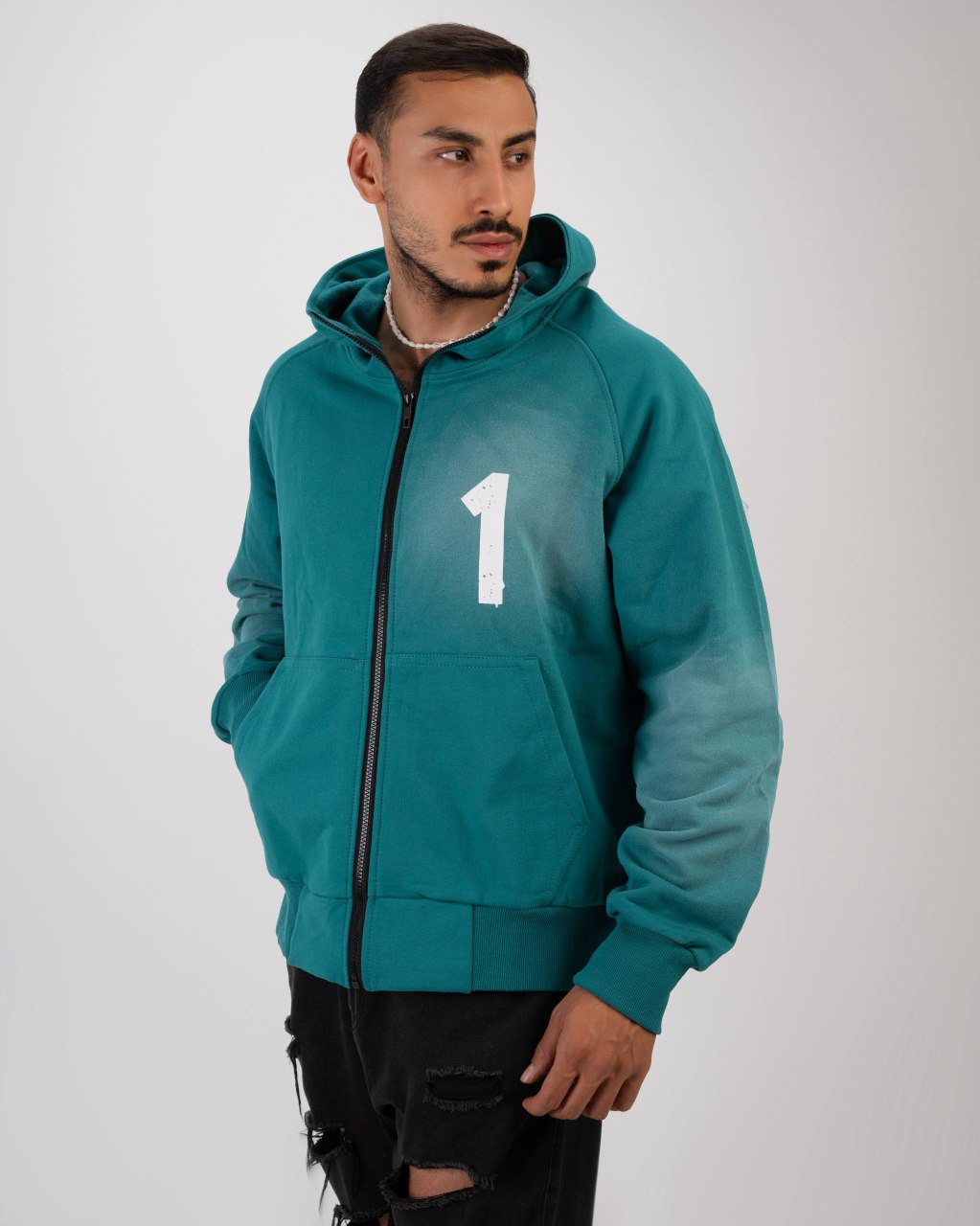سویشرت جلو زیپدار با طرح وان