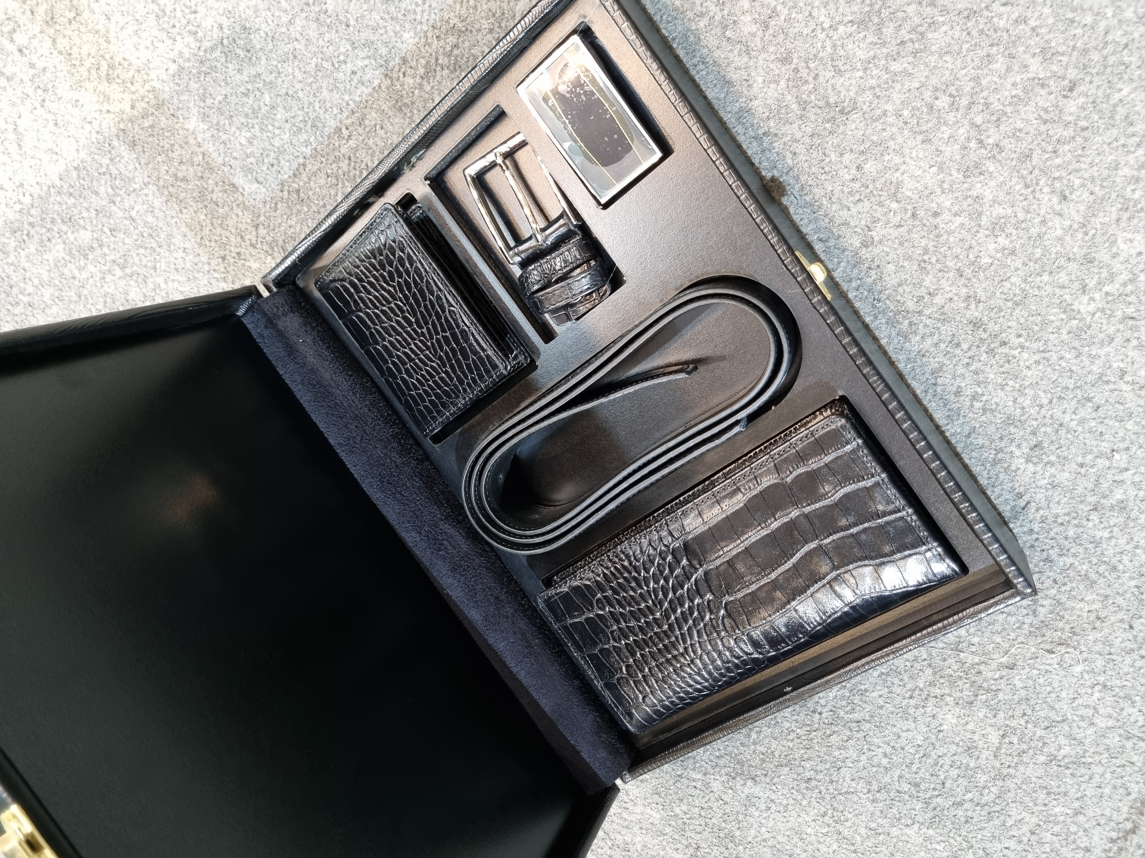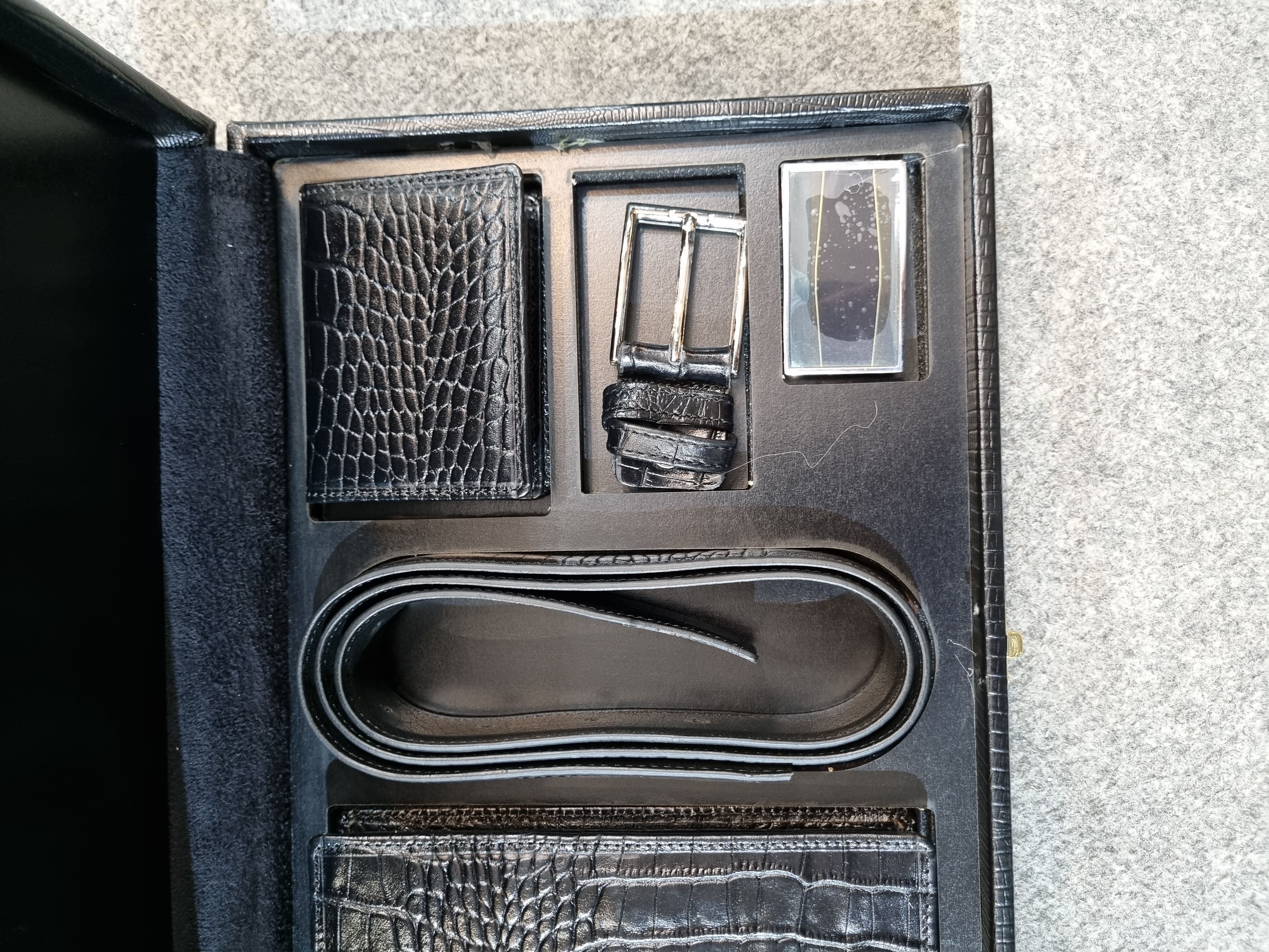 این محصول از چرم طبیعی اعلا تولید شده است و یک ست بسیار خاص و لاکچری برای استفاده هستش.در این ست سه محصول ترکیب شده است که شامل کیف پولی،جاکارتی و کمربند که کمربند این ست دارای دو سری مختلف پلاکدار و میخی میباشد. این محصول بهترین گزینه برای هدیه دادن برای آقایون میباشد.