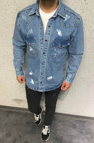 پیراهن کتی جین مردانه پارچه کجرا زاپدار قواره دار دکمه پرسی