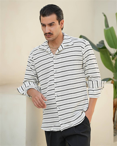 پیراهن بافت رینگی مردانه یقه انگلیسی قواره دار